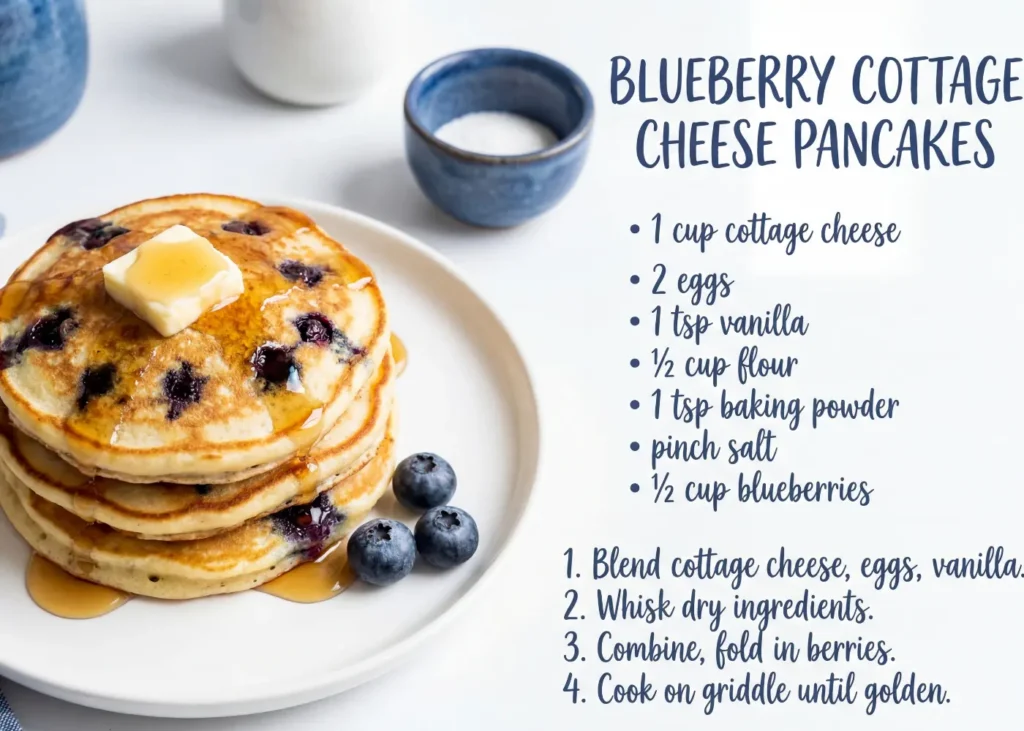 Fluffy blueberry cottage cheese pancakes with juicy berries, balanced sweetness, and extra protein from creamy cottage cheese. Perfect for cozy weekend mornings or make-ahead weekday breakfasts.