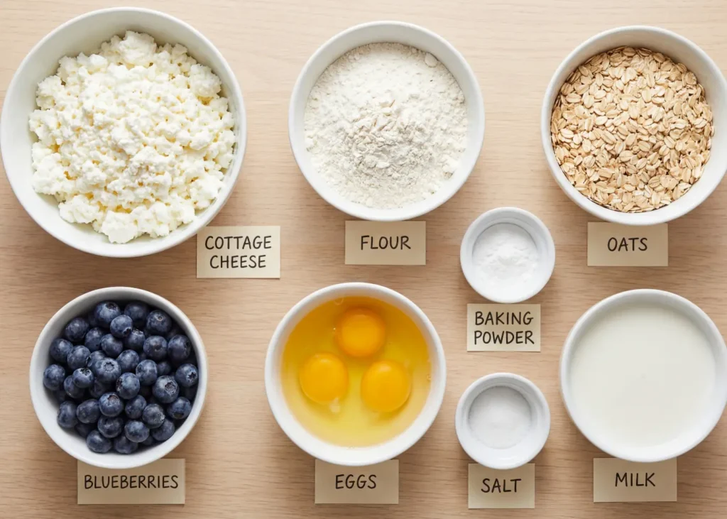 Ingredients for the Best Blueberry Cottage Cheese Pancakes